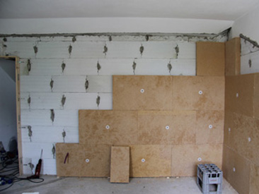Das Dämmsystem ist wie folgt aufgebaut: zuerst die Holzfaserplatte NATURATHERM mit natureplus Zertifizierung. Sie wird auf die bestehende Außenwand raumseitig gedübelt. Anschließend wird die variable Dampfbremse proclima INTELLO PLUS montiert, welche den Feuchtetransport optimal reguliert.
