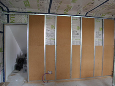 Anschließend beinhaltet diese Lösung eine Wandverkleidung wo alle Rohre verlaufen können. Diese Zwischenwand wird mit dem flexiblen Dämmstoff NATURAFLEX ausgekleidet. Auch dieser Dämmstoff hat die natureplus Zertifizierung.