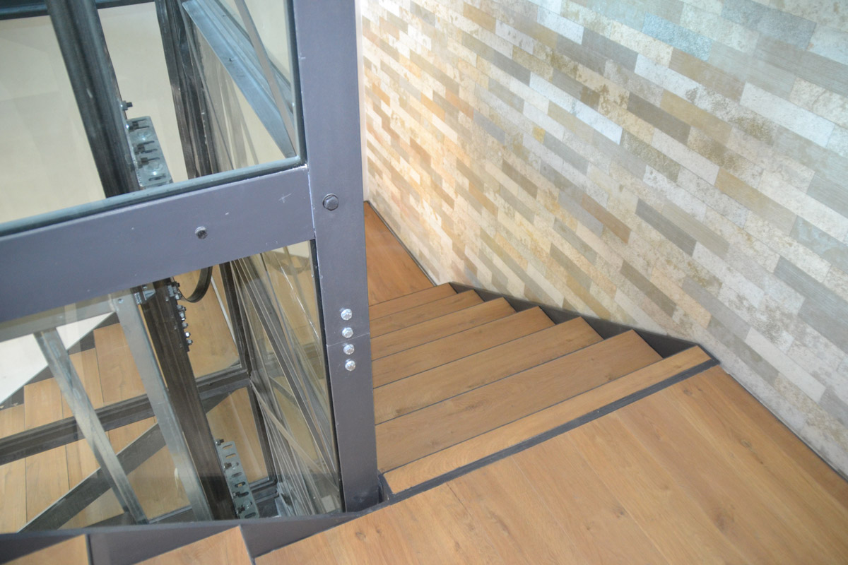 La semplicità geometrica viene esaltata dal potere espressivo di materiali contrastanti come legno e pietra naturale: la planarità della superficie lignea del pannello conferisce eleganza e calore e trova la massima espressione nella zona a tutta altezza della hall. Le pareti interne si alternano tra superficie intonacata e rivestimenti in pietra naturale dalle varie sfumature. Acciaio e vetro del vano scala e ascensore per un tocco high tech in contrapposizione ad un arredo elegante e raffinato. Sull’esterno l’ardesia è ancora protagonista insieme alle ampie vetrate in stile europeo con inglesina bianca.