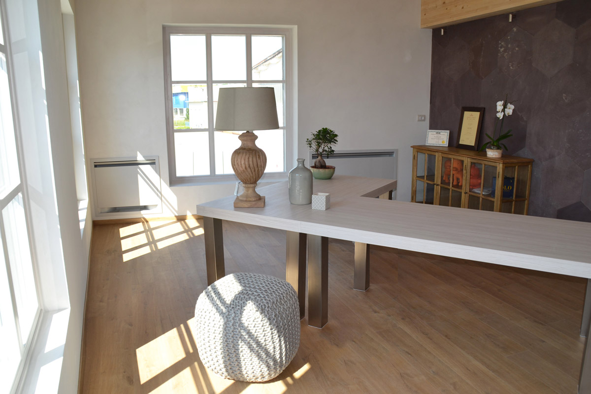 Gli impianti sono stati studiati appositamente per garantire il massimo comfort e dei consumi energetici ridotti. La centrale termica è costituita da una caldaia a condensazione abbinata ad un boiler in pompa di calore. La distribuzione del calore e del sistema di raffrescamento è affidata a ventilconvettori, dove tali soluzioni sono applicate ad incasso. Tutto il fabbisogno di energia elettrica viene garantito da un impianto fotovoltaico di 20 kW mentre la VMC (ventilazione meccanica centralizzata) gestisce e controlla nel miglior modo la qualità dell’aria negli ambienti interni di lavoro. Per garantire una completezza a livello di tenuta, anche per quanto riguarda le finiture, i serramenti sono stati realizzati con una sezione del telaio 80 mm.
