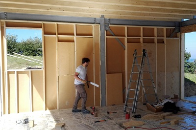 Per non contaminare il sito durante la fase di realizzazione, si è optato per l’utilizzo di materiali naturali come i pannelli isolanti in fibra di legno, per le pareti esterne a telaio, e i materassini in lana vergine di pecora per le pareti interne e la correzione dei ponti termici.