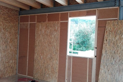La struttura a telaio del manufatto, realizzata completamente a secco in ferro e legno prefabbricato, ci ha permesso di realizzare l'opera senza eseguire movimenti terra. Pure i solai di calpestio interni e le terrazze esterne, realizzate in pagliolato in legno, sono sollevati da terra per non modificare il profilo originario del terreno sottostante.
