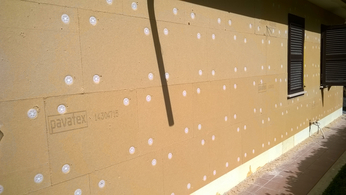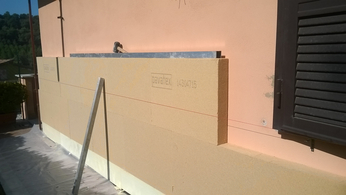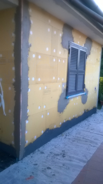 Risanamento energetico di una villetta a schiera nel comune di Fara Sabina (Rieti). Il risanamento è stato effettuato su tutte le pareti esterne, con sistema completo NATURAWALL, per riqualificare energeticamente l'abitazione (passata da una classe G ad una classe C) e correggere i ponti termici interni che determinavano la formazione di muffa e condensa. Il cappotto in fibra di legno Pavatex, naturale e traspirante, ha permesso un perfetto isolamento termico ed igrometrico (valori nei limiti di legge per l'ottenimento dello sgravio fiscale del 65%).