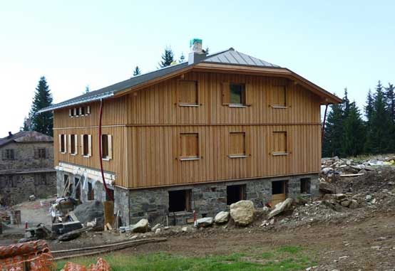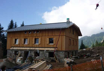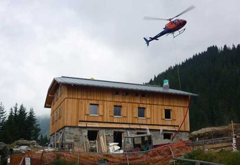 Il rifugio Hochgang si trova in un parco naturale a Parcines (BZ) a una quota di 1839 metri. Poiché non vi sono strade per accedere al cantiere con mezzi di trasporto convenzionali, i moduli prefabbricati sono stati trasportati e posati interamente con l’elicottero.