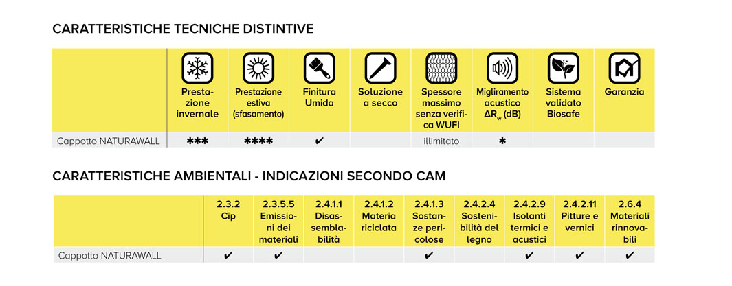 | PRESTAZIONE ESTIVA | La prestazione estiva della soluzione indica lo sfasamento del pacchetto. Si va da una prestazione minima di 1 stella (ϕ circa 6h) ad una prestazione massima di 4 stelle (ϕ circa 20h). |
