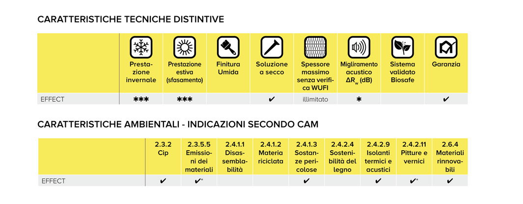 | PRESTAZIONE ESTIVA | La prestazione estiva della soluzione indica lo sfasamento del pacchetto. Si va da una prestazione minima di 1 stella (ϕ circa 6h) ad una prestazione massima di 4 stelle (ϕ circa 20h). |
